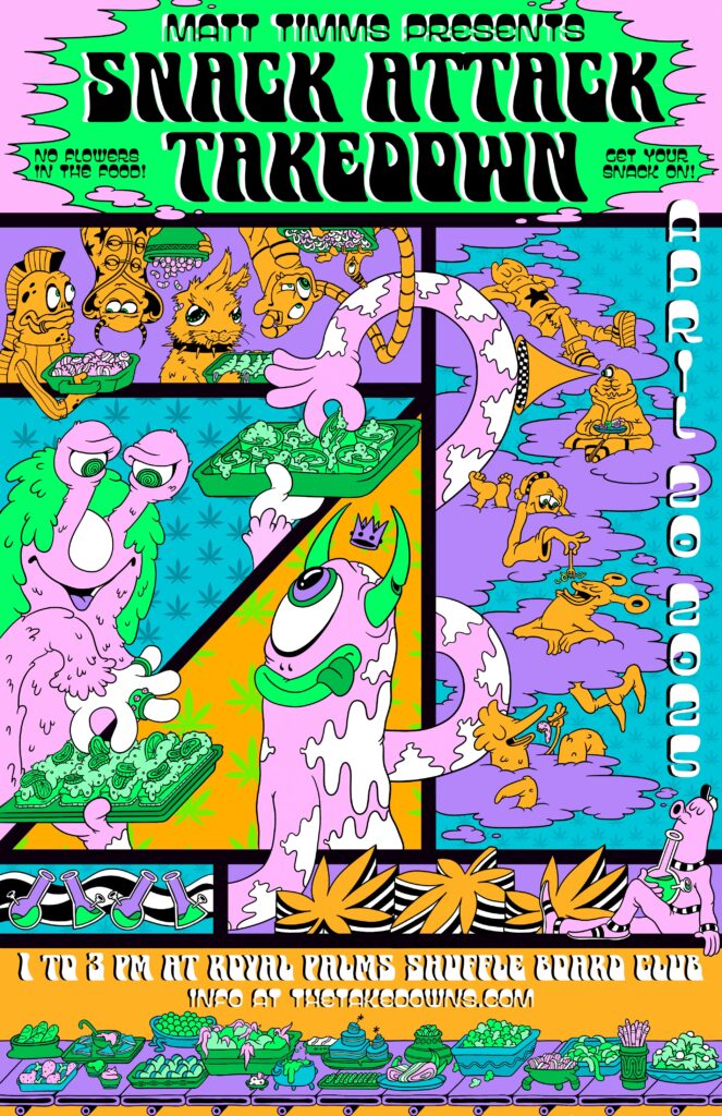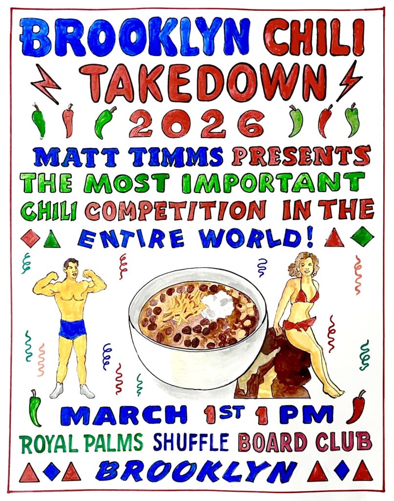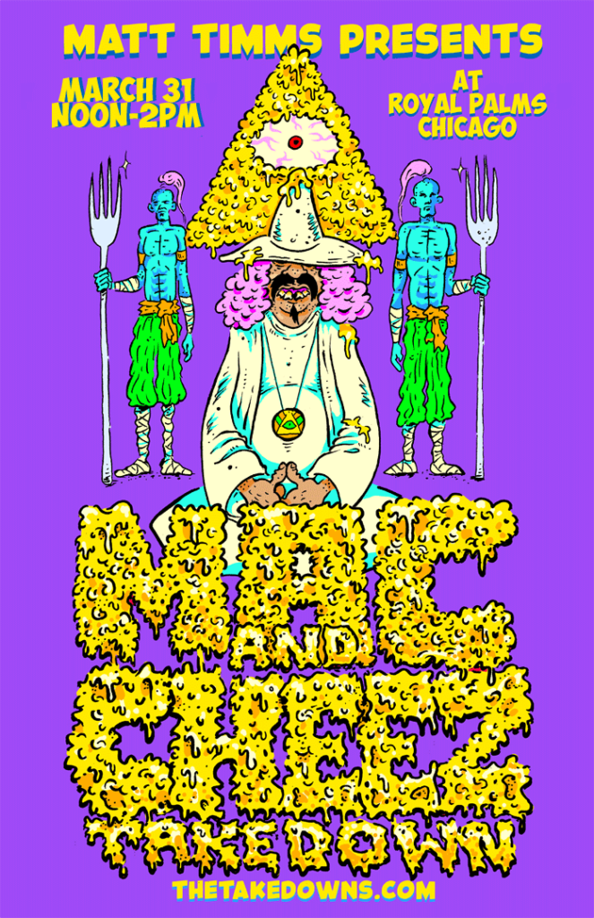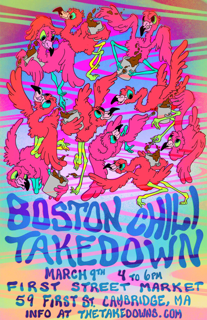 Since the beginning, The Takedown has relied on expert artists to get the word out! Warrior princesses do battle in distant lands to rescue (or destroy?) bowls of chili. Goat headed snake men who dare partake of chili most foul are hewn in two by vixen sorceress babes. A world dominated by the evilest foods!